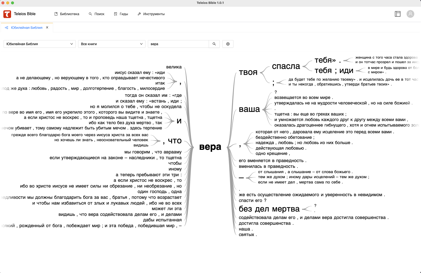 Посмотрите на поиск на библейский текст по-новому открывая для себя связи между словами и фразами.